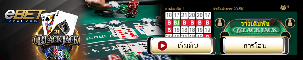eBet (อีเบท) เป็นค่ายคาสิโนชั้นนำของเอเชีย มีให้เล่นครบทุกอย่างรวมถึงบาคาร่า แต่ทราบหรือไม่ว่า "แบล็คแจ็ค" คือเกมเดิมพันที่เรามีโอกาสชนะมากที่สุดจากทุกสิ่งอย่างที่มีในคาสิโน, สมาชิก UFA77 ท่านไหนกำลังมองหาเกมไพ่ที่เล่นเพลิน และมีโอกาสได้เงินจากคาสิโนสูงที่สุด ไปบู๊กันได้เลยกับ "แบล็คแจ็คคนจริง"